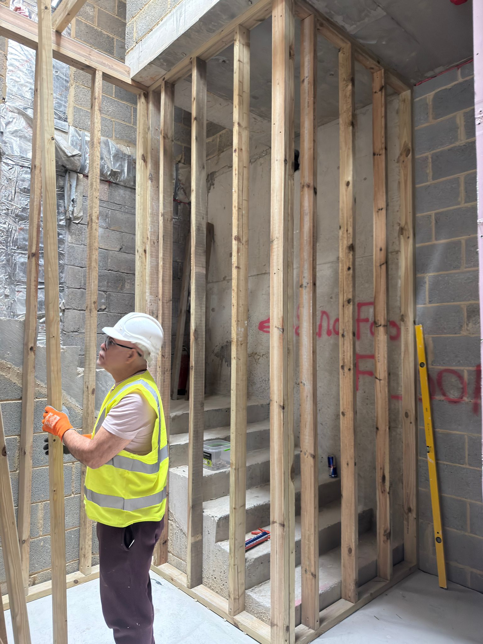 First floor Masjid area being cleaned and prepared for block work walls and external brick